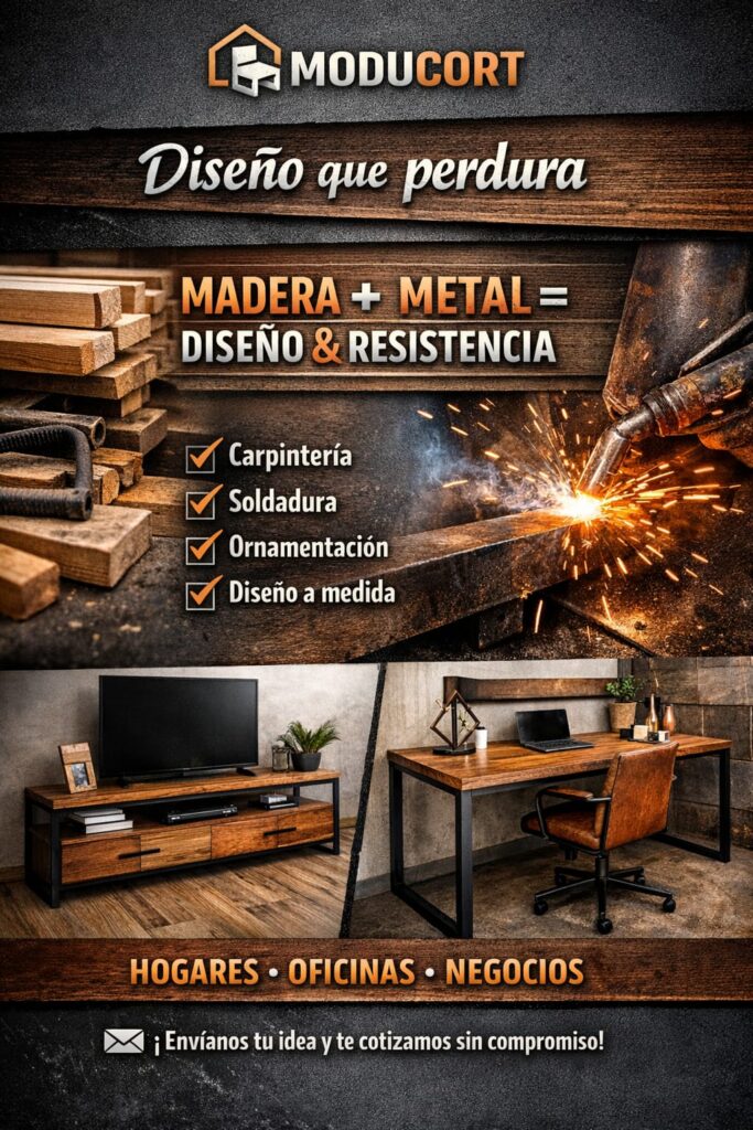 En Moducort fabricamos muebles y estructuras combinando carpintería en madera con soldadura y ornamentación metálica.